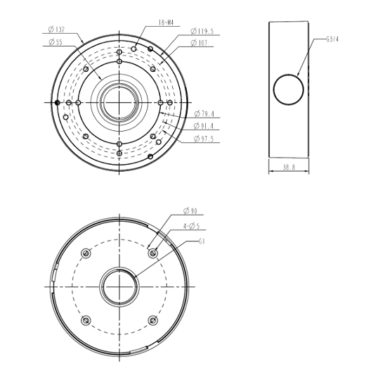 Junction box for cameras, available for wall or ceiling mounting.
