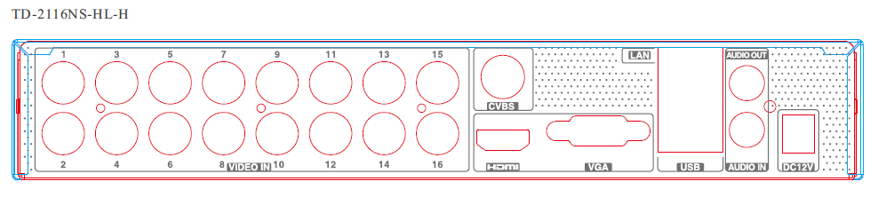 | Frame Rate | Analog Channel: 1080P Lite/720P/WD1: 25fps/30fps (PAL/NTSC)(only CH 1 supports) 1080P Lite/720P/WD1: 12fps/15fps (PAL/NTSC)(other channels support) 720P Lite: 25fps / 30fps (PAL/NTSC) IP Channel: 25fps/30fps (PAL/NTSC) | |